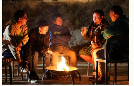 ・静かな環境で夜は焚き火を囲み、都会では味わえないリフレッシュした時間を!(焚き火台&薪/1台3,000円/事前予約制)