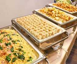 ○夕食&朝食は、ボリューム満点のビュッフェ形式!夕食はアルコール持ち込みOK!